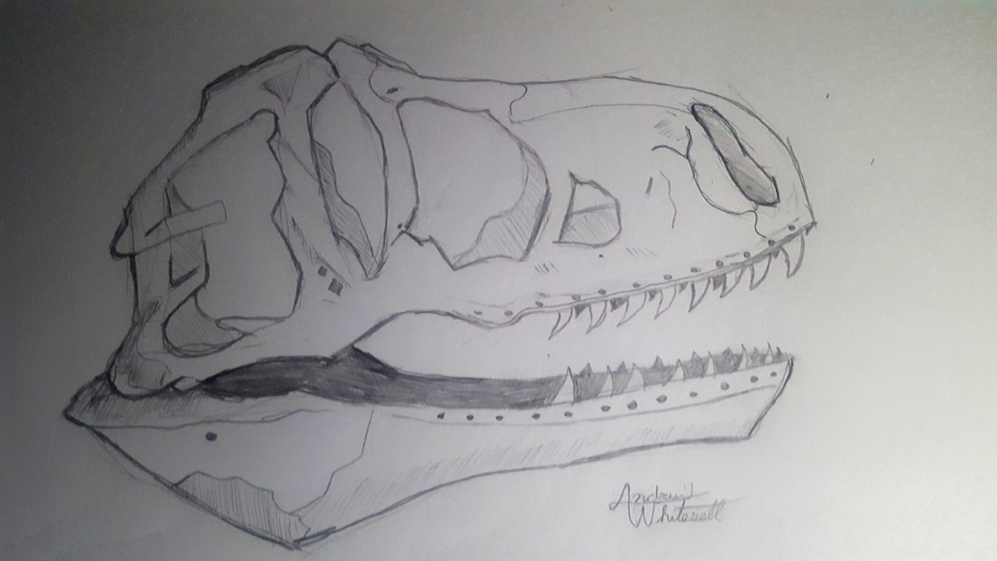Sketch of a Tyrannosaurs skull.